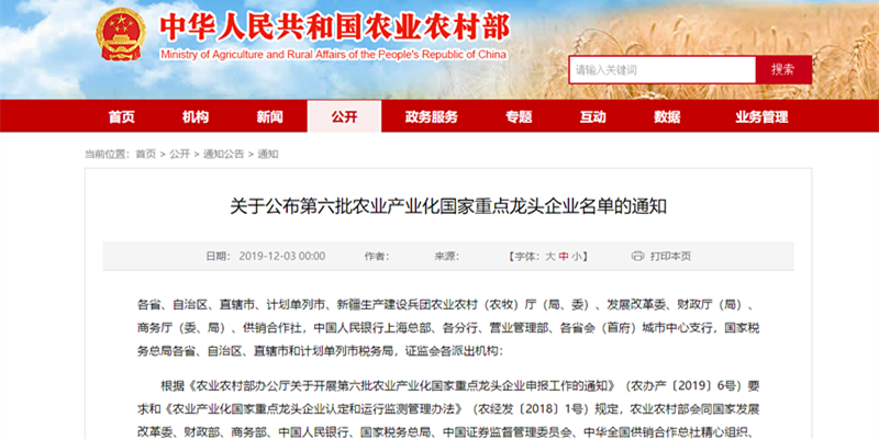12月3日,农业农村部、国家发展改革委、财政部、商务部、中国人民银行、国家税务总局、中国证券监督管理委员会、中华全国供销合作总社联合印发通知,公布第六批 299 家农业产业化国家重点龙头企业名单,龙江开云网页版·官方站入口-开云(中国) 公司榜上有名。